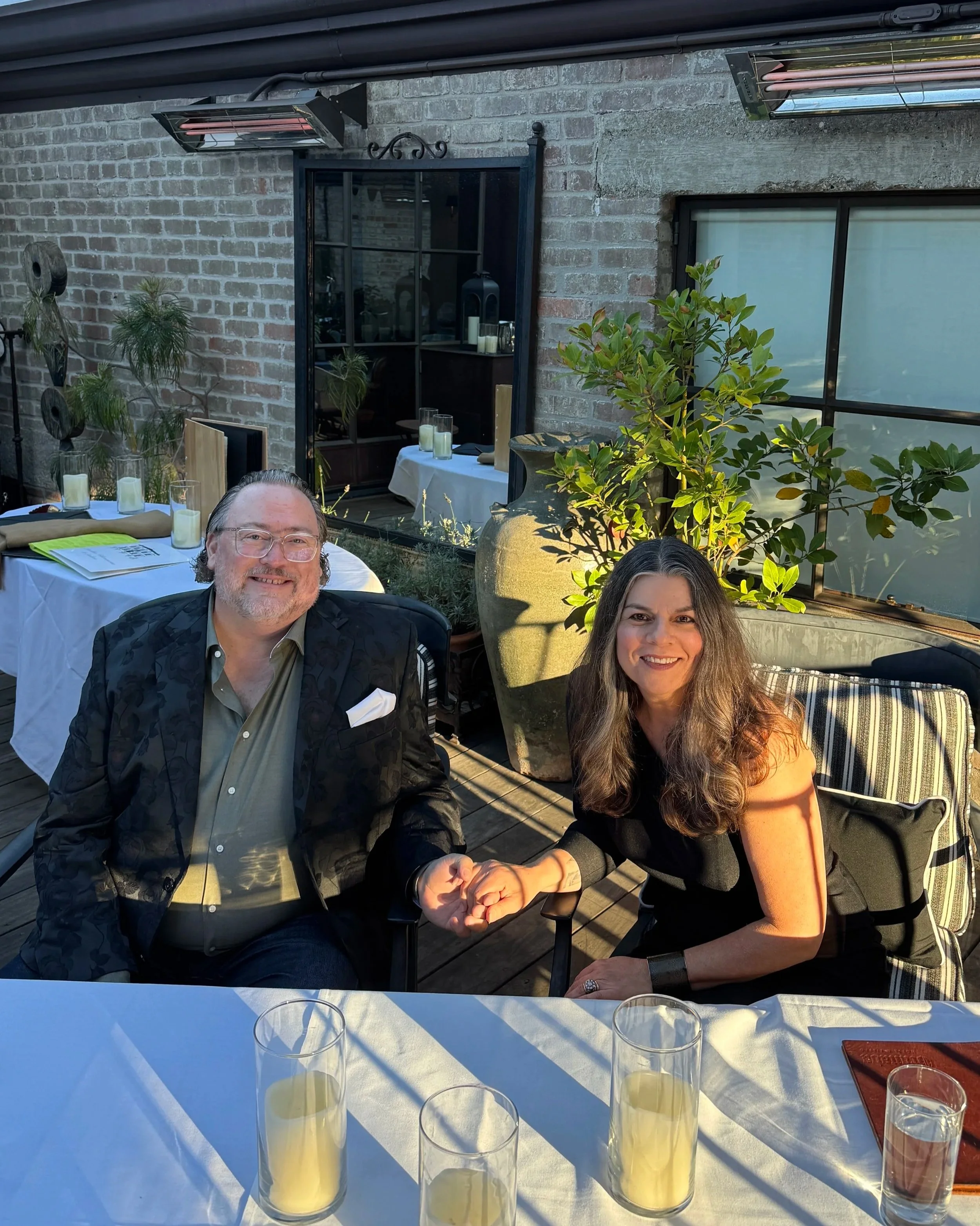 When asked what keeps bringing them back, Mindy says: “We come here to relive some of our most cherished memories while each time creating new ones. There are the ones that never change. Like the wood and iron front door and the signature scent when you walk in the lobby (IYKYK). The ivy-covered alley, the stunning and timeless brick building itself. But nothing beats the comfort of Room 1 with its beautiful fireplace and heavenly shower. And the balcony and window that we love to keep open while listening to the sounds of the bustling restaurant below. Then there is the friendliness of the staff. We have met so many amazing ones over the years, all so welcoming and accommodating. Like the exceptional Eva who was so instrumental in helping us create our wedding weekend to Rochelle who helped make our 10-year anniversary experience unforgettable.”