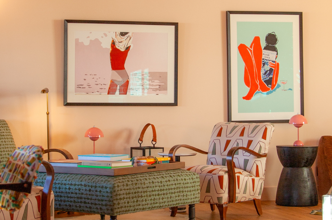 Artist CK Reed is known for her bold, layered mixed-media collages, abstract paintings, and murals. For Nomada, she crafted custom prints that capture the spirit of each property, blending color, texture, and imagination into pieces that feel alive. Every work reflects her fearless creativity and singular perspective — a reminder of the power of women shaping the visual world.